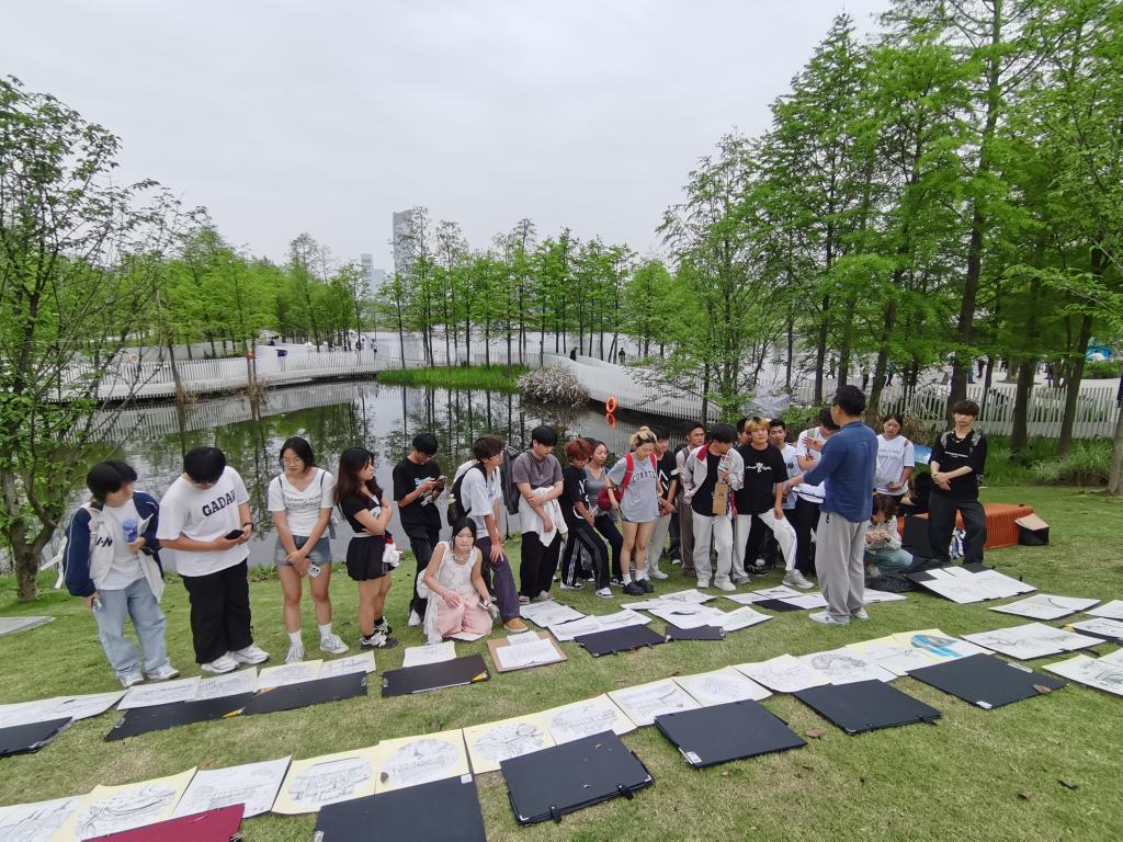 学院对本次活动高度重视,为了保证活动顺利实施,进行了充分的前期策划,制定了完善的工作方案。活动正式开展前,学院召开专项会议,党总支书记郭光海、院长詹颖专门就活动安全、教学质量、巡视督导、后勤保障等工作进行强调,将责任落实到人。活动期间,各班级按照计划分别在铁像寺水街、南湖公园、兴隆湖公园、天府公园、易园、锦城公园、麓湖公园、天府美术馆、东郊记忆等地开展人文采风活动。以学院班子成员、专业主任、行政教辅人员组成的巡视小组分别对各写生点进行了巡视。活动过程井然有序,在课程教师的指导下,学生们表现出了极高的热情和专注度,通过观察-比较-认识-表达的步骤,完成了一幅幅色彩斑斓的作品,顺利完成了教学任务。