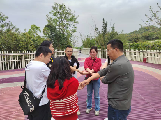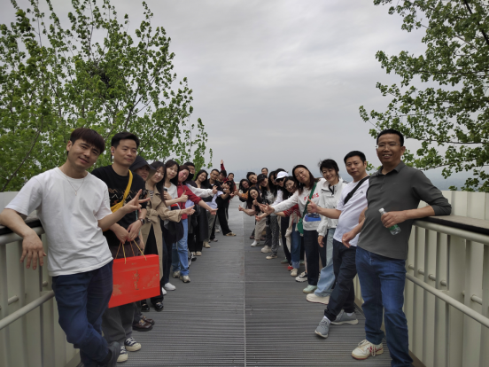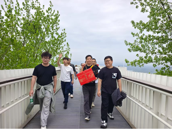 龙泉山森林绿道高空栈道位于成都龙泉山城市森林公园内,全长约2950米,相对高差约为209米,相当于60层楼的高度。栈道依山而建,以“浪漫爱情”为主题,沿途设有多个打卡点位。艺术设计学院分工会全体成员乘坐大巴抵达山下集合,分工会主席贾仕延对活动的规则进行了讲解和说明。大家在工作人员的组织下先进行了热身和分组,然后开始了结合趣味游戏的攀登竞赛。
