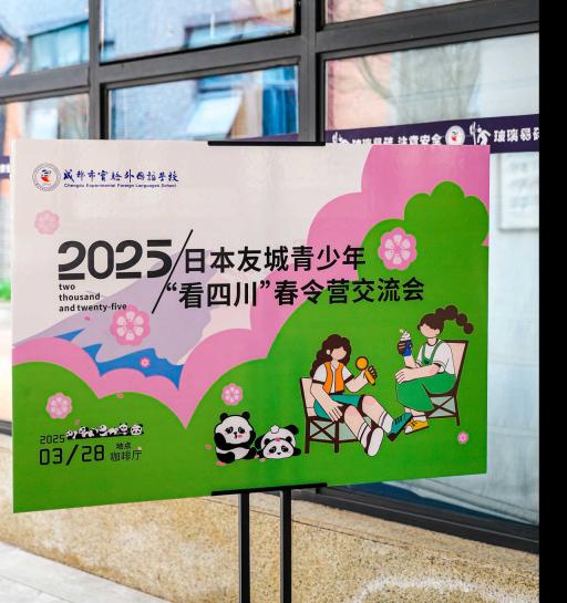 近日,四川省外事办公室与成都市实验外国语学校联合举办日本友城青少年“看四川”春令营交流活动,在2025年实验外国语学校日语月期间,迎接来自友好城市山梨县的师生代表团。艺术设计学院2023级广告艺术设计专业1班学生龚莉承担活动视觉设计工作,其设计的立体展牌、KT板等视觉物料,以高水准的专业创意赢得主办方和参与师生的一致好评,展现了我院学生扎实的专业能力和社会服务意识。