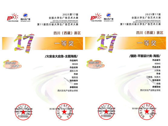 近日,艺术设计学院学生在第十七届全国大学生广告艺术大赛四川(西藏)赛区荣获佳绩,在特别命题赛道中斩获一等奖2项,同时收获二等奖7 项、三等奖 11 项。