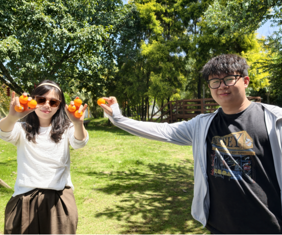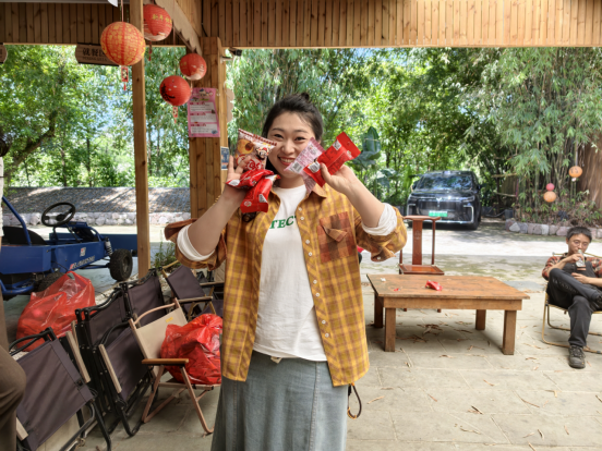 如果说套圈大赛是技巧与运气的比拼,那么“春田花花寻蛋比赛”则是细心与耐心的较量。随着一声示意,老师们瞬间化身“寻蛋达人”,沐浴在温暖的春光里,或俯身细查花丛缝隙,或驻足搜寻小树根部,或循着溪流岸边仔细探寻,不放过任何一个可能藏有“彩蛋”(橙色乒乓球)的角落。营地间,不时传来发现彩蛋的欢呼雀跃,也有相互提醒的暖心话语,欢声笑语交织在一起,打破了平日的忙碌与拘谨,让大家在轻松愉悦的氛围中拉近了距离。经过一番紧张角逐,冯妮娜、杨秘密两位老师凭借敏锐的观察力和十足的耐心,成功斩获冠亚军;其他参与老师也各有收获,拿着寻到的“彩蛋”兑换了新鲜鸡蛋,把春日的喜悦与实惠一同带回家。
