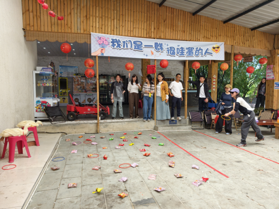 惬意的午餐过后,活动正式拉开帷幕。分工会主席贾仕延详细讲解了本次春游田园趣味比赛的规则。首个登场的“鸭鸭杯套圈大赛”瞬间点燃现场氛围,老师们有序排队,手持套圈,站在红线之外,目光专注地锁定终点两只憨态可掬的“鸭鸭”目标。每一次抛圈都伴随着阵阵欢呼与呐喊,有的老师精准发力、一击即中,有的老师虽屡屡失手,却毫不气馁,调整姿势、再接再厉。15次机会,承载着满满的期待,鸭鸭前方摆放的各类小零食,更是让这场竞技多了几分惊喜。经过一番紧张又欢乐的角逐,10位老师凭借精准的技巧成功套中鸭鸭,斩获大奖;即便未能抱走大奖,老师们也纷纷套中心仪的小零食,脸上洋溢着满足的笑容。
