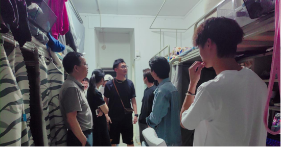 在艺术设计学院学生会生活权益部学生干部们陪同下,学院领导和老师们深入寝室,与同学们亲切交流,详细询问大家的课程学习进度、日常作息安排等情况,认真倾听同学们在学习和生活中遇到的困难与建议,鼓励大家营造良好的寝室学习氛围。同时重点核查了寝室在寝人员情况,确保每一名学生的安全与健康。学生会成员则对违规电器、管制刀具等违禁物品进行仔细排查及时向同学们进行安全教育与提醒。此次查寝活动,进一步规范了学生的寝室生活秩序,增强了学生的安全意识和纪律意识。