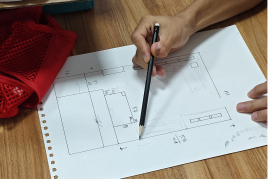 随后,任尧将团队分为测量、资料、绘图、建模设计和记录汇报五个小组,并详细交代测量尺寸、收集老年无障碍空间数据等关键任务。12名同学迅速行动:测量小组严谨测绘庭院数据,绘图小组同步勾勒空间布局,资料小组则查阅大量案例为方案设计提供科学依据。各组紧密协作,高效完成了前期基础工作。